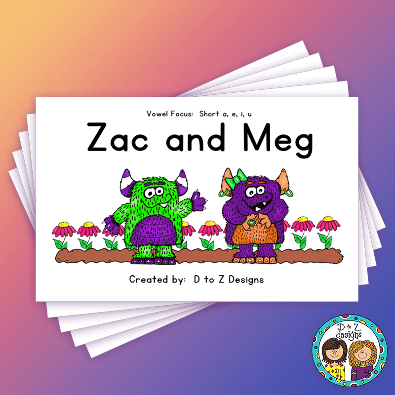 Looking to build strong early reading skills? Zac and Meg is a fun decodable book about two friendly monsters, featuring CVC words with short a, e, i, and u—perfect for phonics and decoding practice!